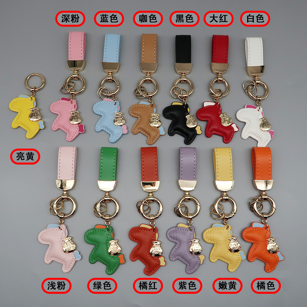 马上有钱手绳钥匙扣 皮革卡通小马挂件情侣包包网红汽车钥匙扣