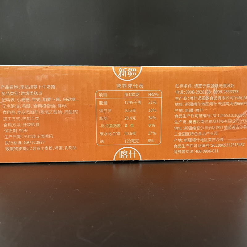 • 商品名称:新疆南达胡萝卜牛奶馕喀什特产零食烤馕饼干牛乳糕点营养点心代餐