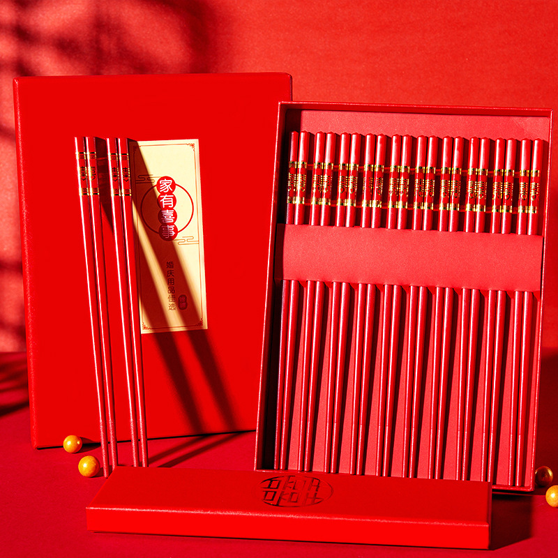 10双结婚喜字红色筷子盒装高档防滑合金筷子喜庆乔迁龙凤喜筷家用婚礼
