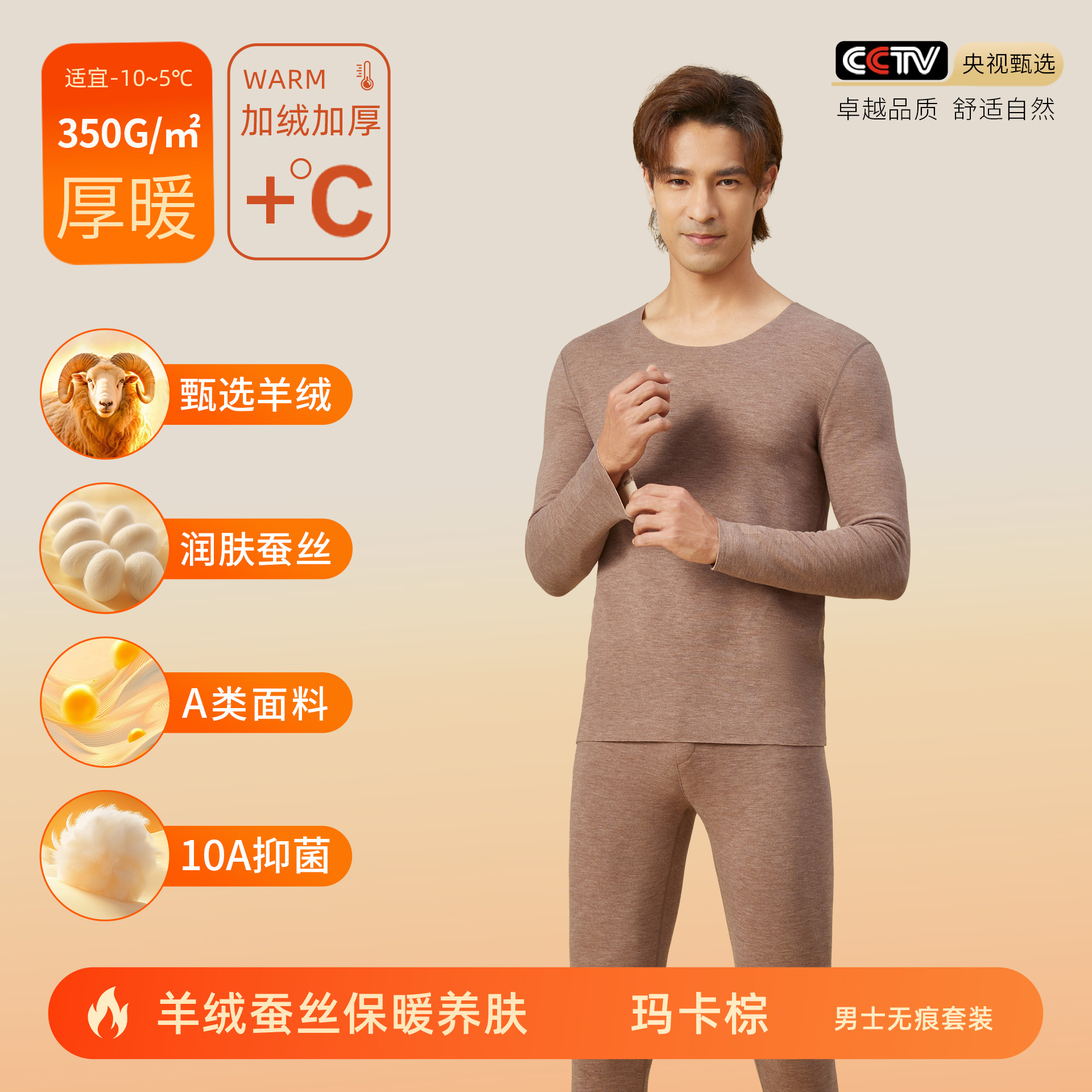 • 商品名称:羊绒蚕丝德绒保暖内衣男士A类保暖衣秋衣秋裤男士套装加绒10A抗菌