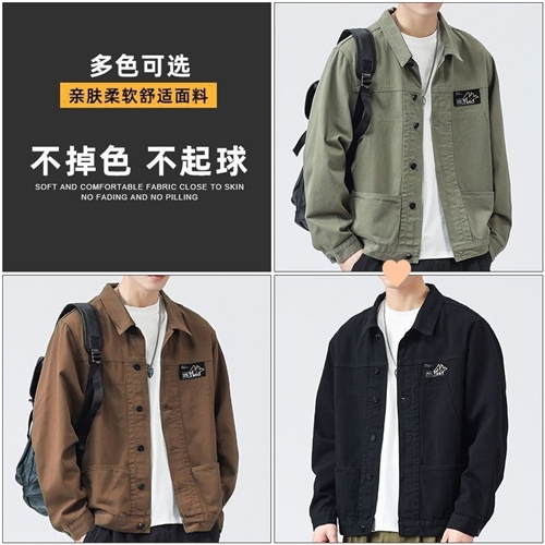 春季新款男士牛仔服春秋纯棉宽松工装牛仔上衣休闲外套男装夹克男