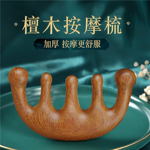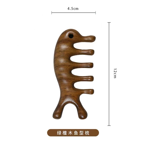 中国风木质绿檀木梳经络按摩梳古法工艺家用木梳宽大齿梳子