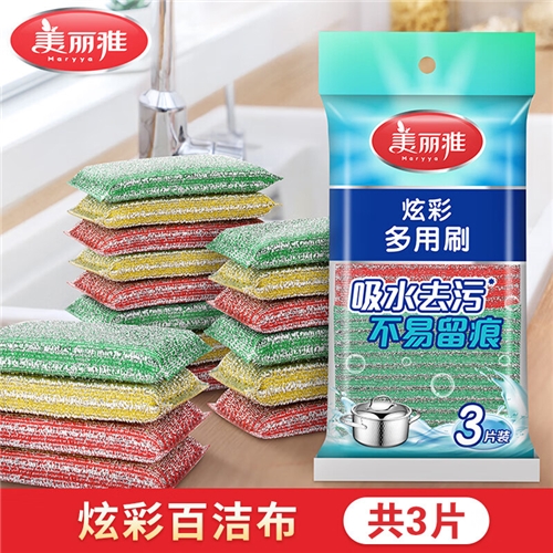 美丽雅百洁布洗碗布厨房用刷双面锅刷家用清洁抹布百洁擦3片