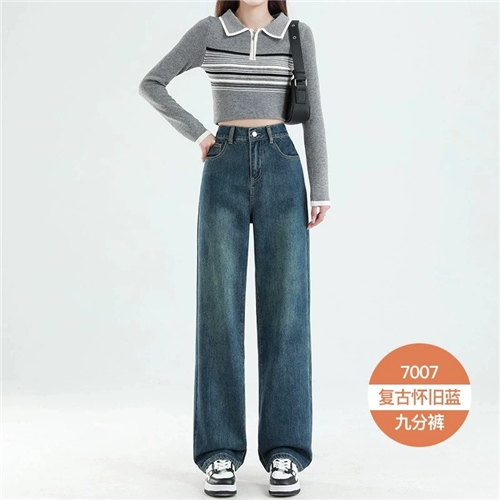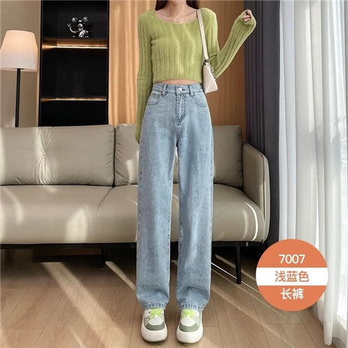 2025新款牛仔裤春秋窄版复古女直筒宽松高腰裤子显瘦阔腿裤