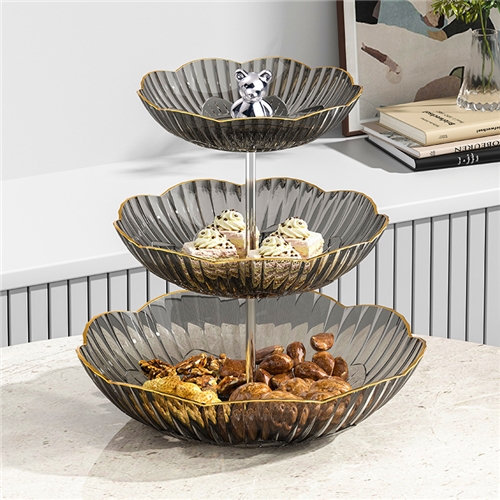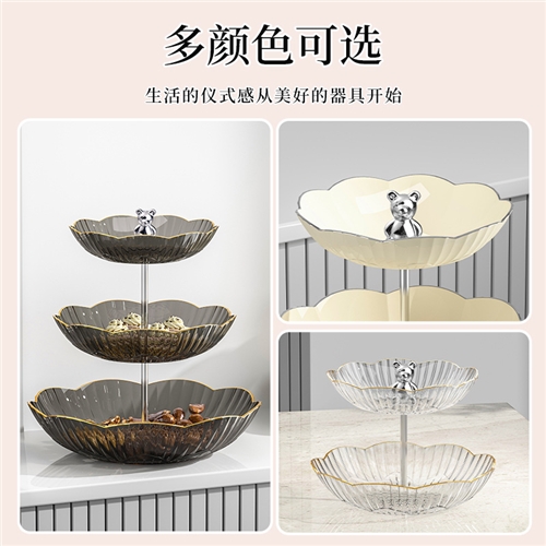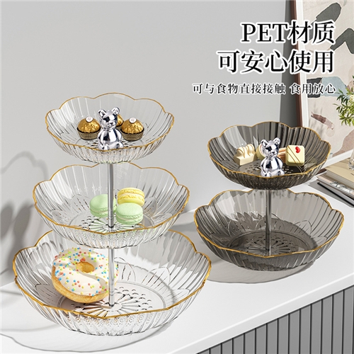 果盘新年高级感塑料零食盘透明三层水果蛋糕盘轻奢风多层果篮