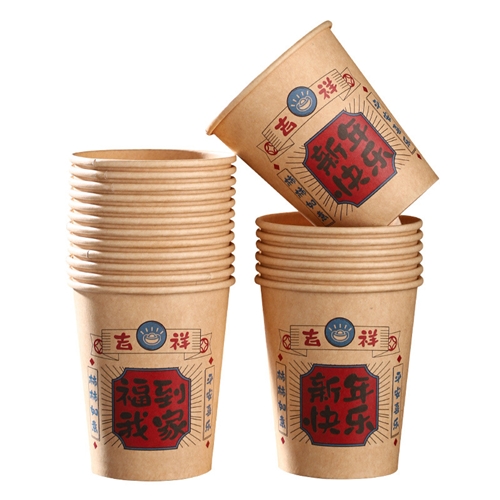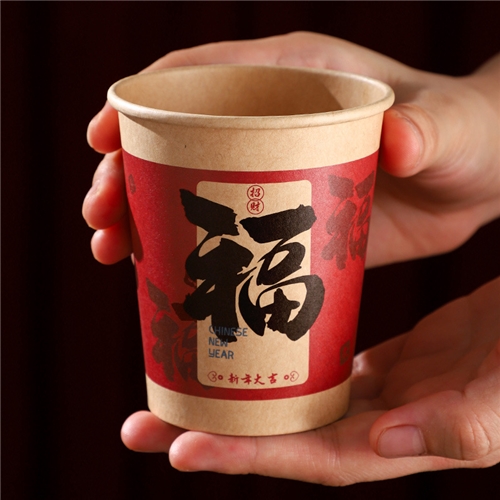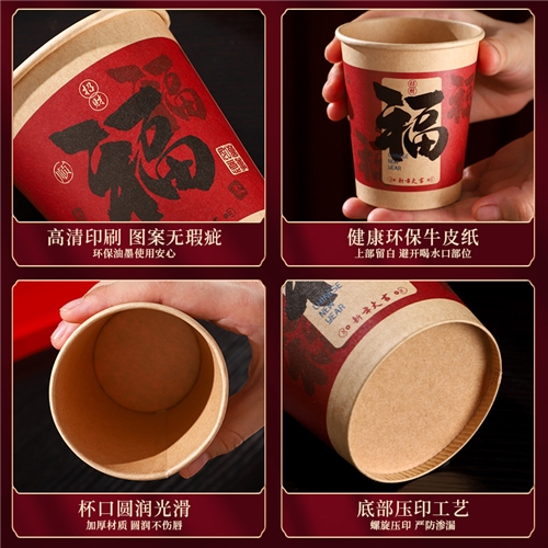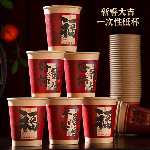 2025蛇年加厚纸杯一次性茶水杯子家用过春节新年网红纸杯