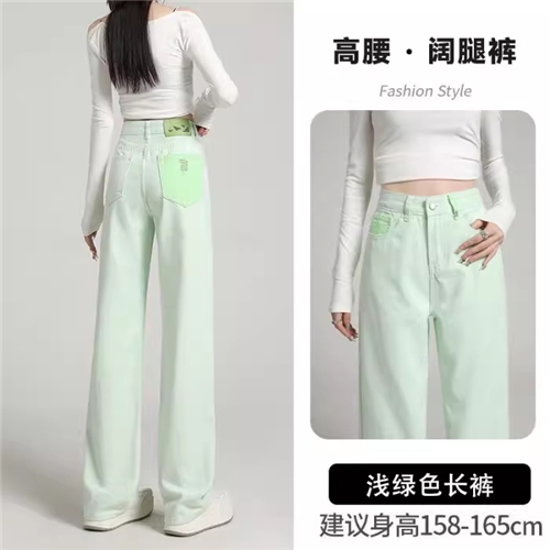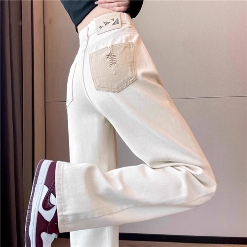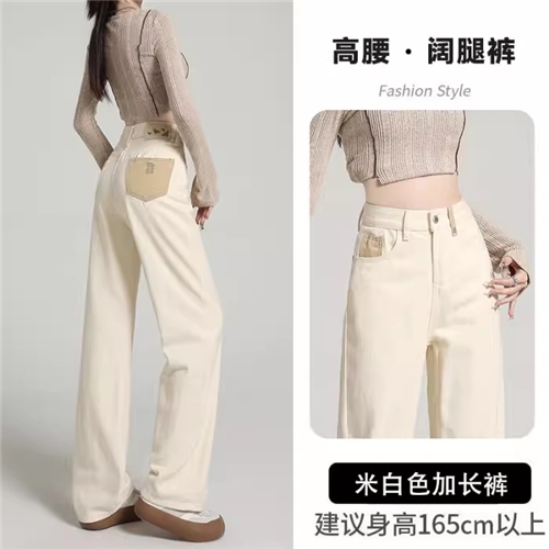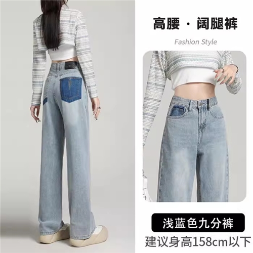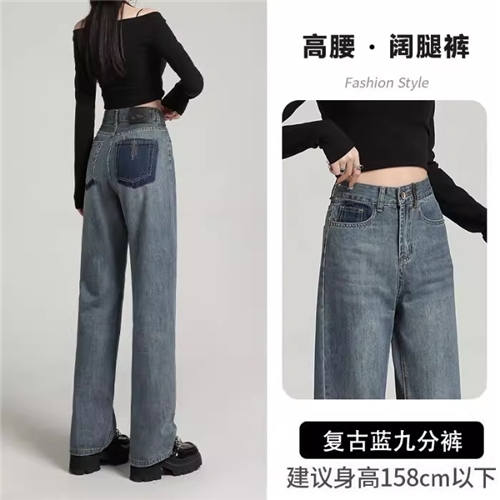 2025年春夏新款撞色直筒牛仔裤女高腰垂感百搭气质显瘦窄版阔腿裤