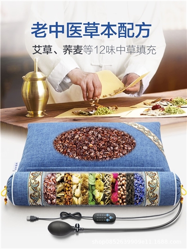 护颈助眠专用艾草荞麦圆柱护颈枕