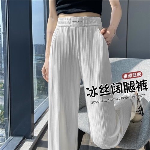 冰丝阔腿裤女新款春夏薄款高腰宽松休闲显瘦垂感窄版直筒裤子
