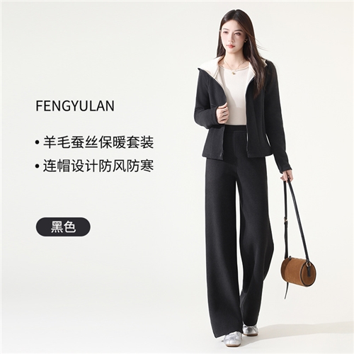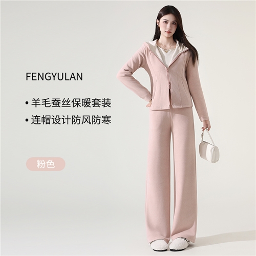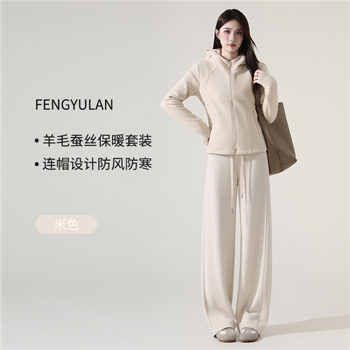 冬季加绒加厚运动卫衣套装女直筒休闲连帽两件套