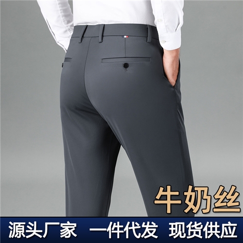 锦纶直筒男士休闲裤夏季薄款男裤冰丝高弹力商务西裤春秋款裤子男