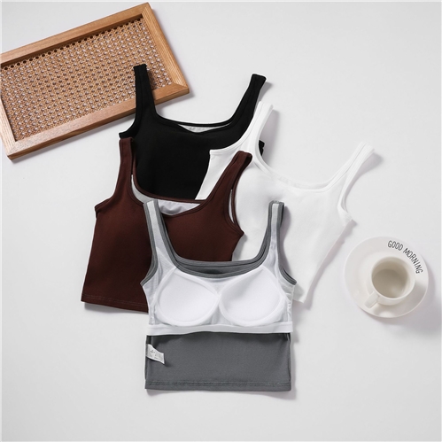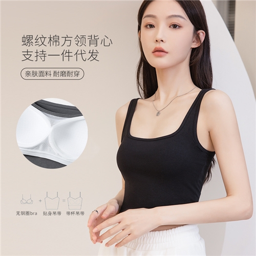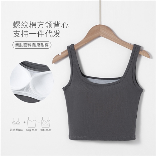 罩杯一体式 外穿内搭方领美背裹胸抹胸带胸垫打底背心运动文胸女