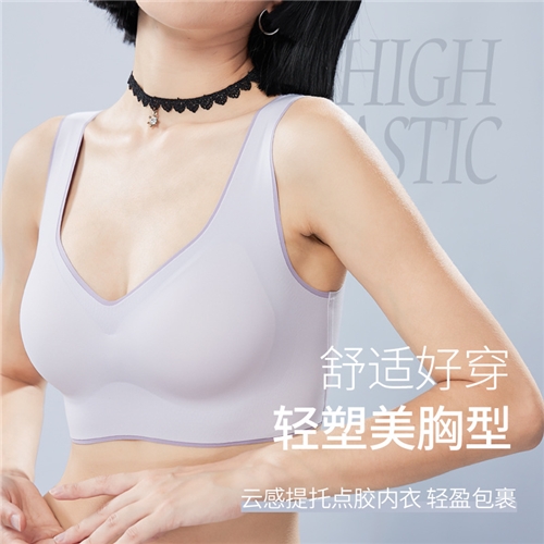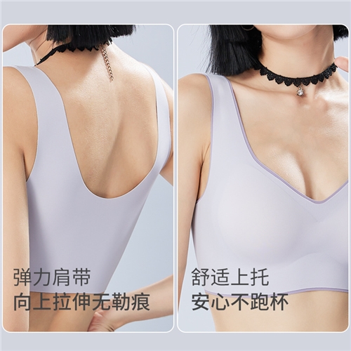 宽肩带撞色内衣女小胸聚拢7A抗菌凉感冰丝背心无钢圈胸罩无痕文胸
