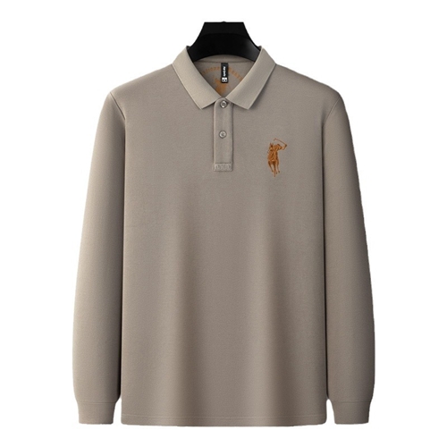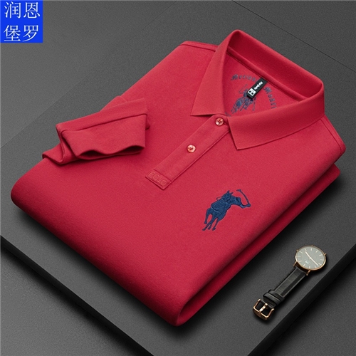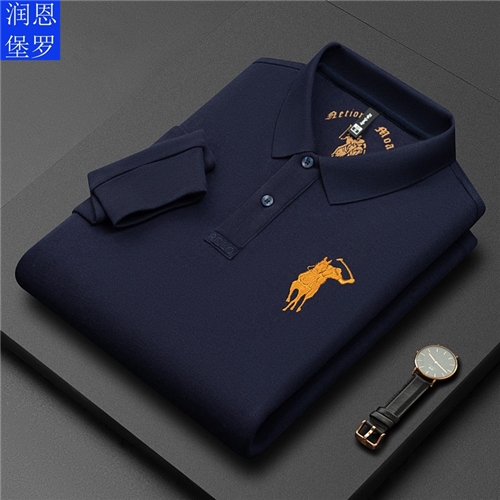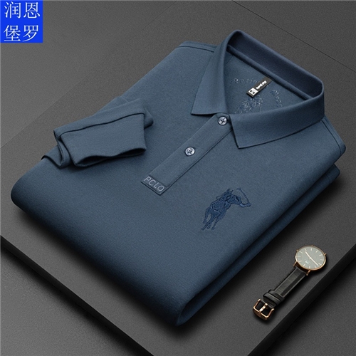 秋冬翻领双面珠地男士纯棉POLO衫 刺绣套头中年男T恤上衣