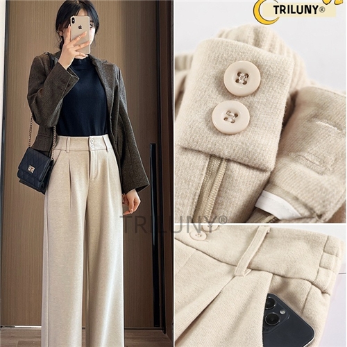 380克星空呢大码西装裤直筒裤女 秋冬新款高腰垂感呢子休闲裤