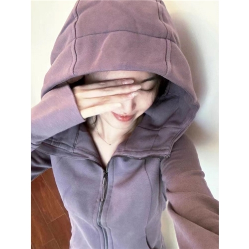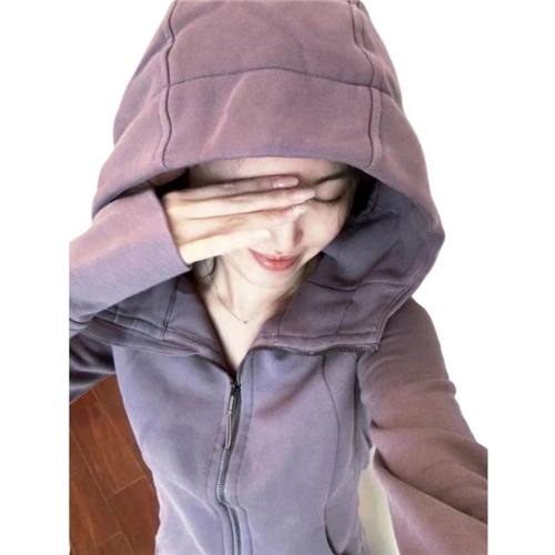 紫色lulu xiushen修身卫衣外套女春秋款2024新款上衣初秋女装穿搭