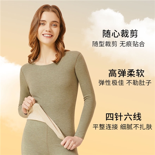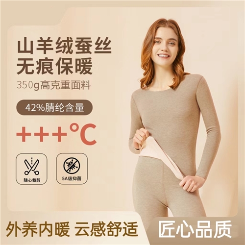羊绒蚕丝保暖内衣女士套装无痕加厚发热德绒女内衣秋衣秋裤保暖衣