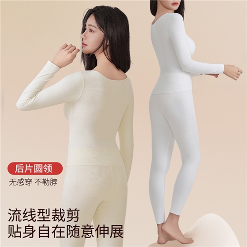 秋冬女士保暖内衣套装山羊绒蚕丝V领双面磨毛外穿恒温发热打底衫