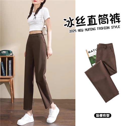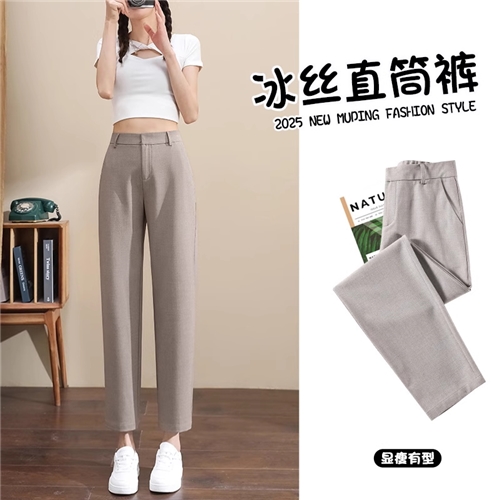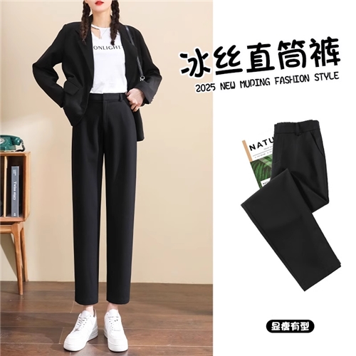 冰丝窄版直筒裤女夏季薄款休闲九分哈伦裤小个子西装烟管裤
