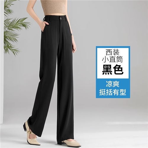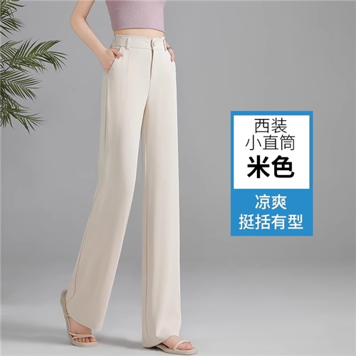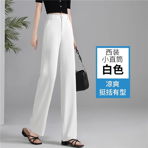 白色窄版直筒裤女薄2025夏季新款垂感显瘦高腰大码西装休闲长裤子