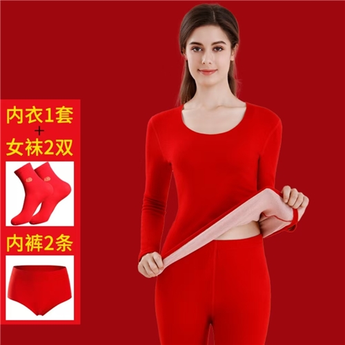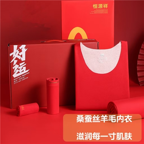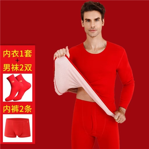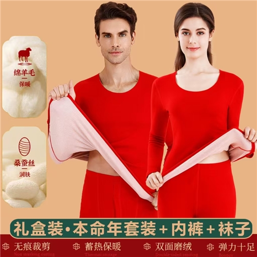 男士羊毛双面磨绒秋衣秋裤套装本命年大红色保暖内衣礼盒装