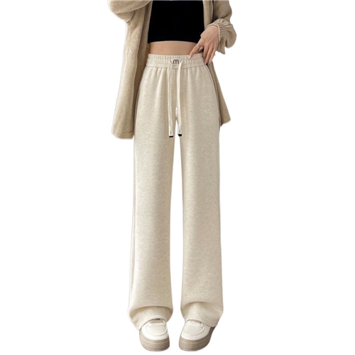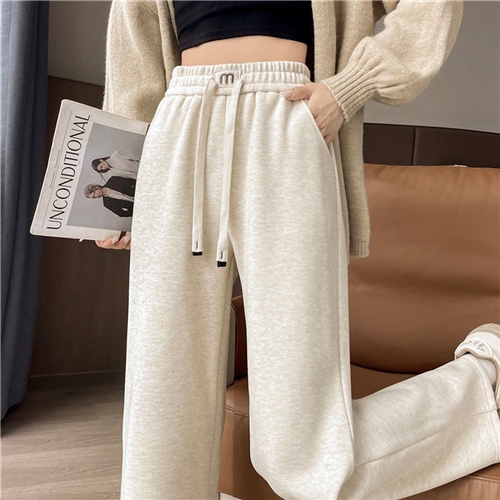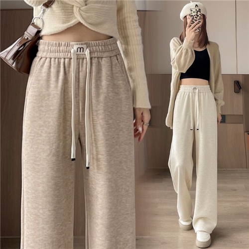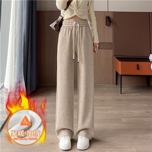 羊绒窄版阔腿裤女加绒加厚秋冬季高腰垂坠感直筒裤子宽松休闲长裤