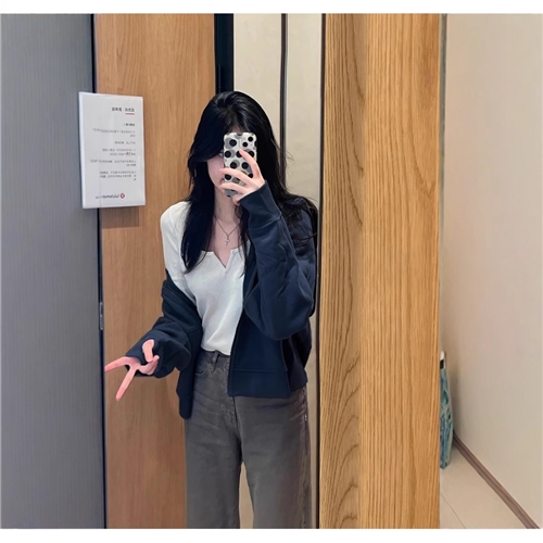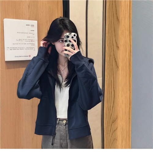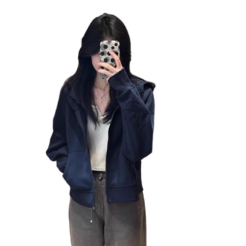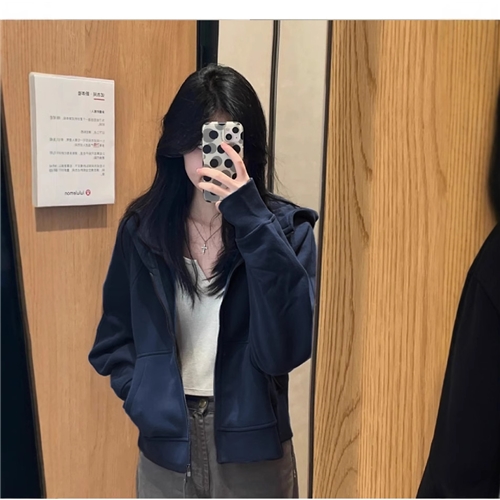 美式复古高街连帽短款卫衣女春秋chic宽松薄款外套慵懒开衫上衣潮