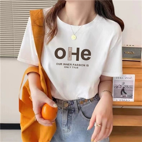 夏季短袖新款女士精梳棉字母T恤时尚休闲打底纯棉韩版体恤女半袖