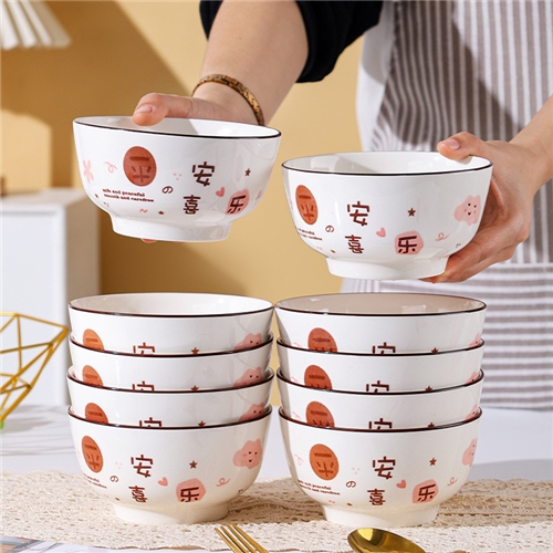10个装碗家用吃饭陶瓷碗高颜值瓷碗5英寸大号米饭碗餐具